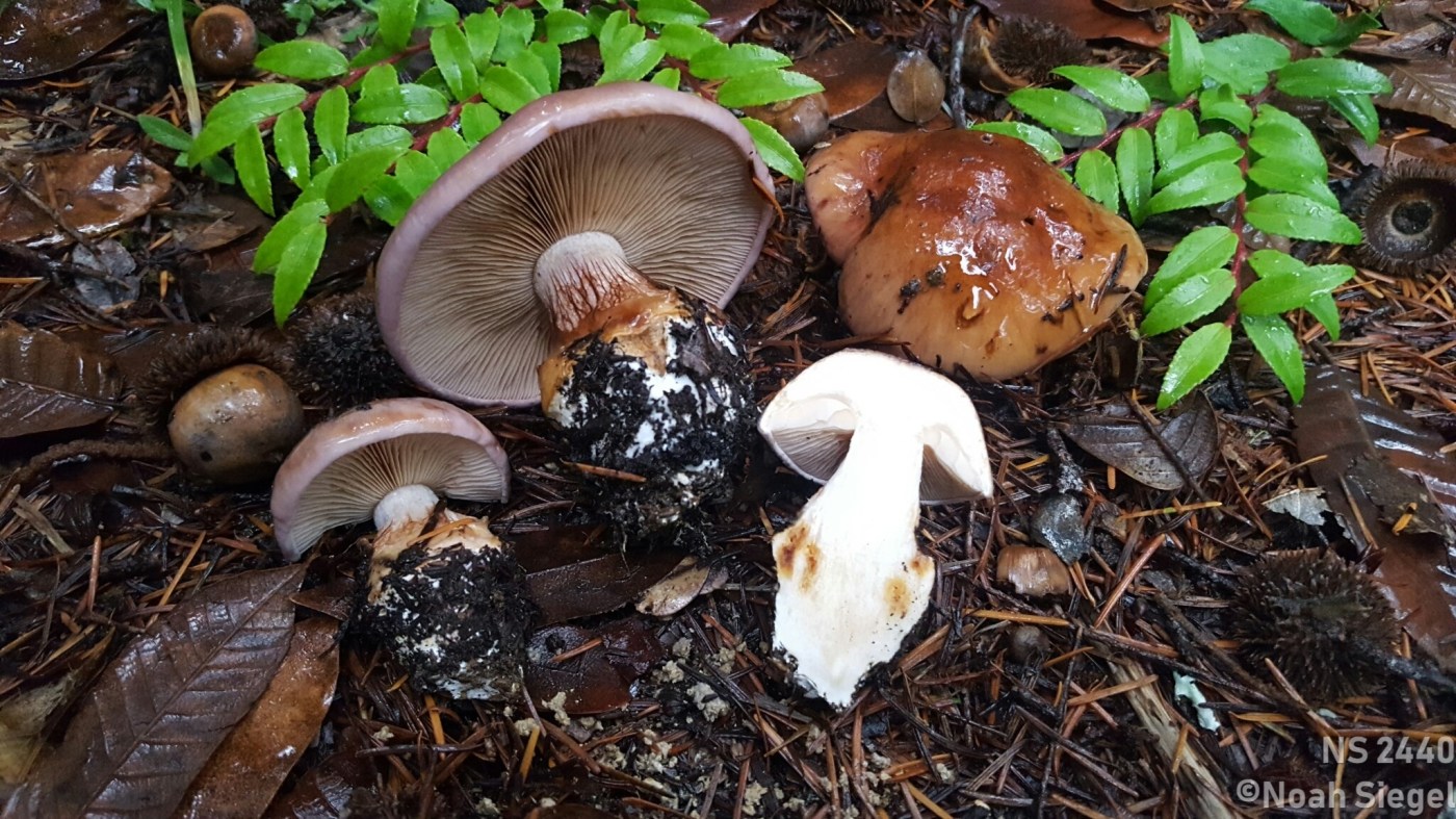 Pileus: 62-98 mm across, viscid, violet tones when young, soon losing them and browning out. KOH: dark brown on cap, and browned portions of flesh, otherwise no reaction. Odor: raphanoid, taste mild.