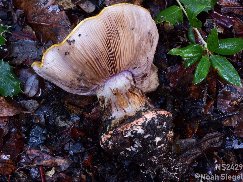 Pileus: 99 mm across. Stipe: 67 mm long and 20 mm thick at apex, 44 mm bulb. Base: mycelium and base of pink color with pink rhizomorphs.