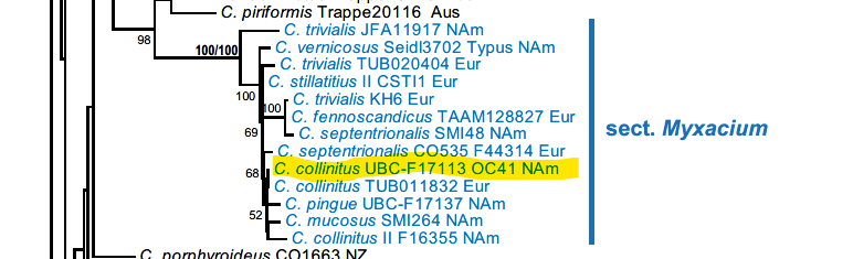The concept of Cortinarius collinitus has a troubled history and we still lack access to a barcode of a neotype. However, we know enough to recognize and name a relatively common PNW species to ‘group’, while understanding that at least one similar undescribed species likely occurs here too.