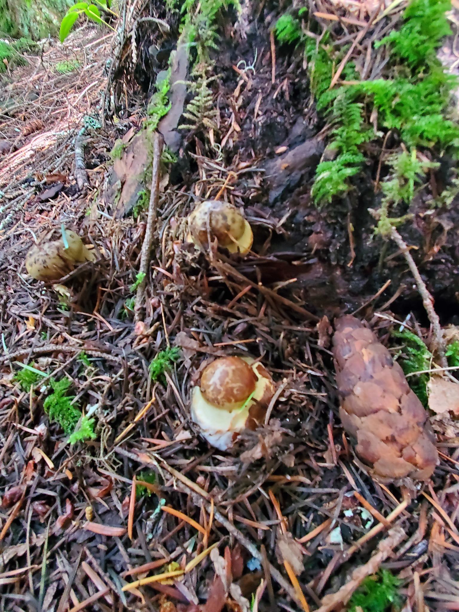 Cortinarius subsulfurinus is one of several yellow-green Phlegmaciod species which occur in the Pacific Northwest. It is in section Calochroi. The name refers to it’s close relationship to Cortinarius sulfurinus, a species described from Europe and not known to occur here.