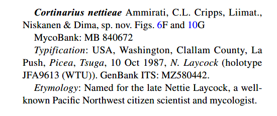 Cortinarius nettieae Ammirati, C.L. Cripps, Liimat., Niskanen & Dima, Mycological Progress 20 (11): 1427 (2021)