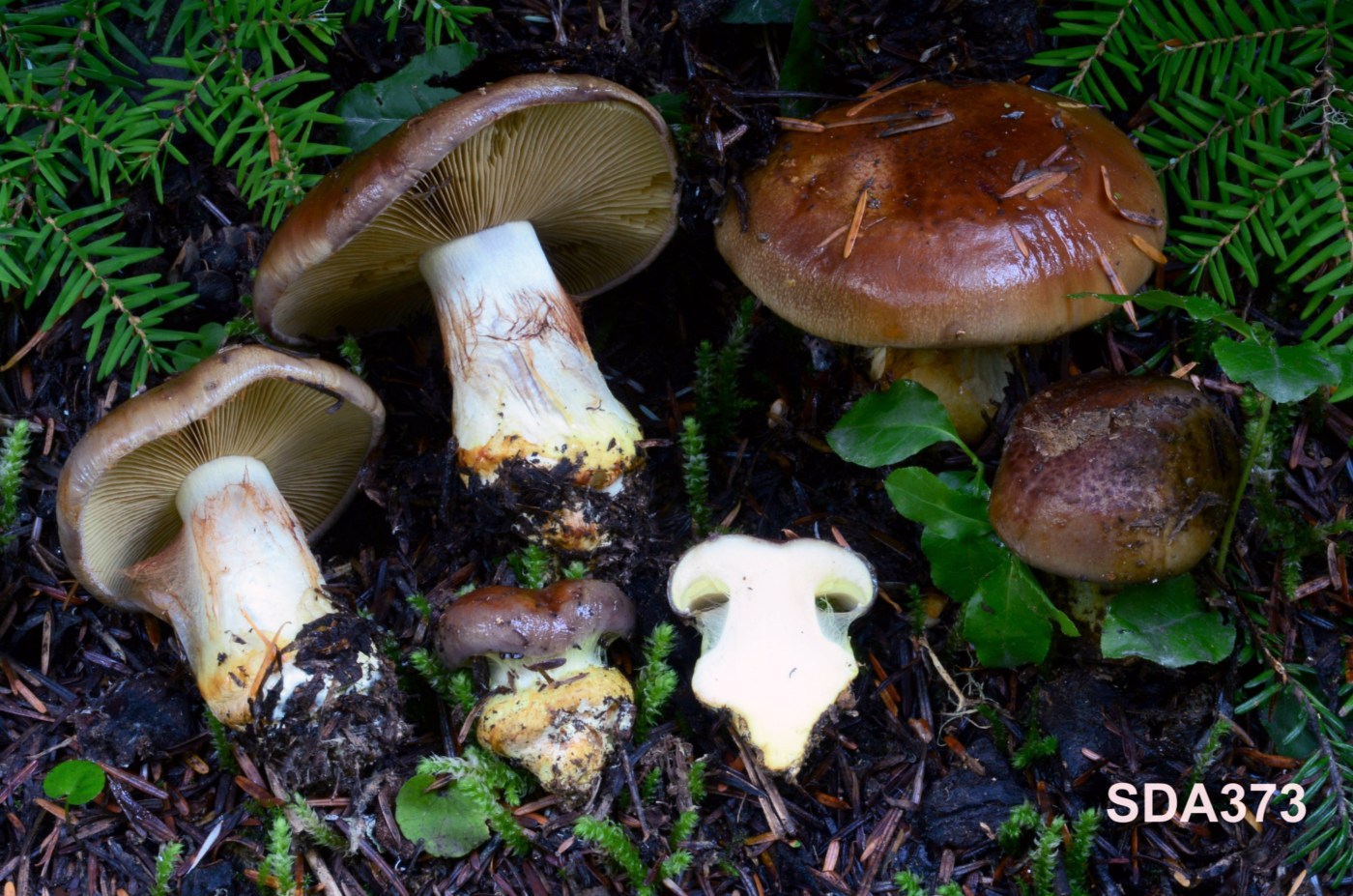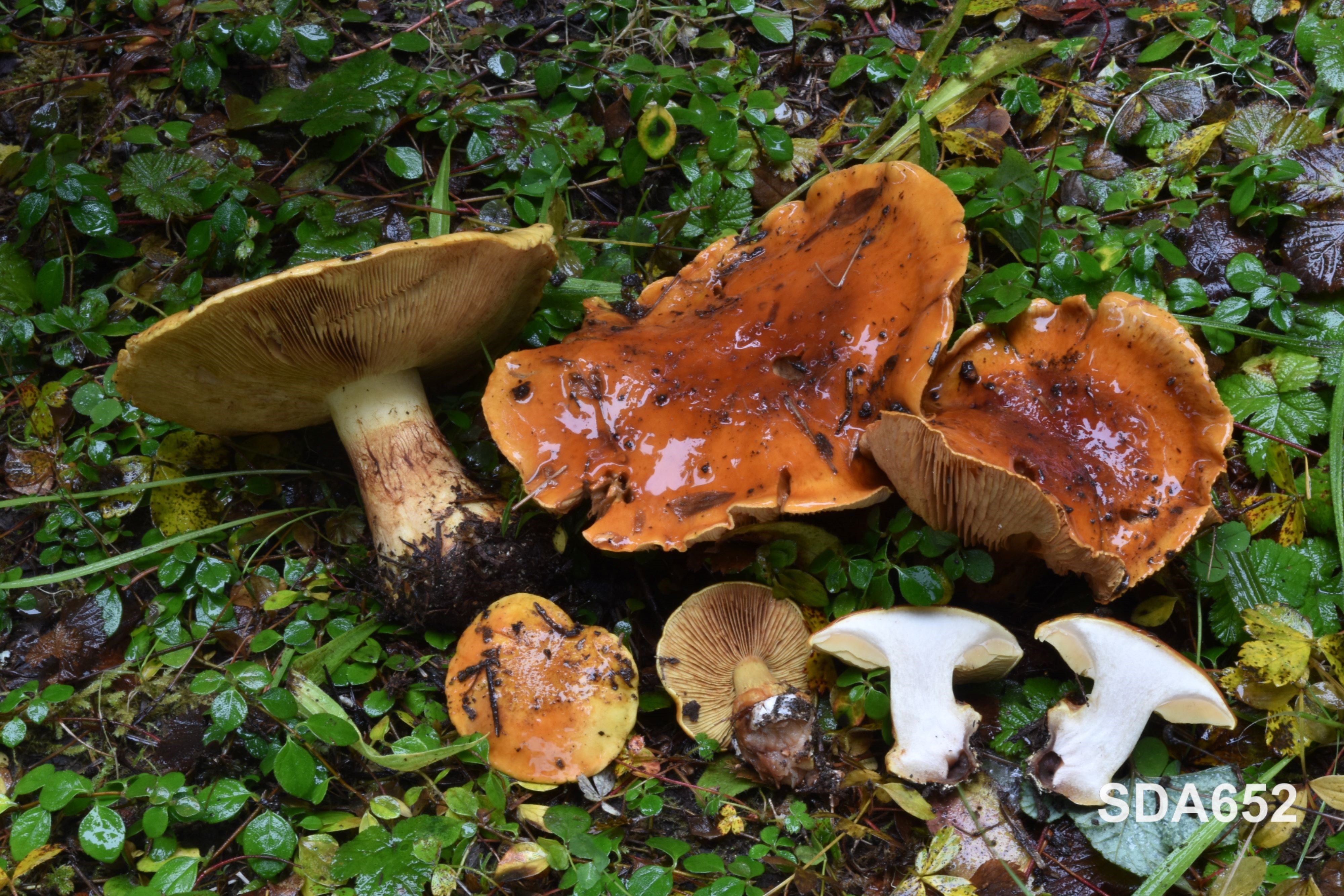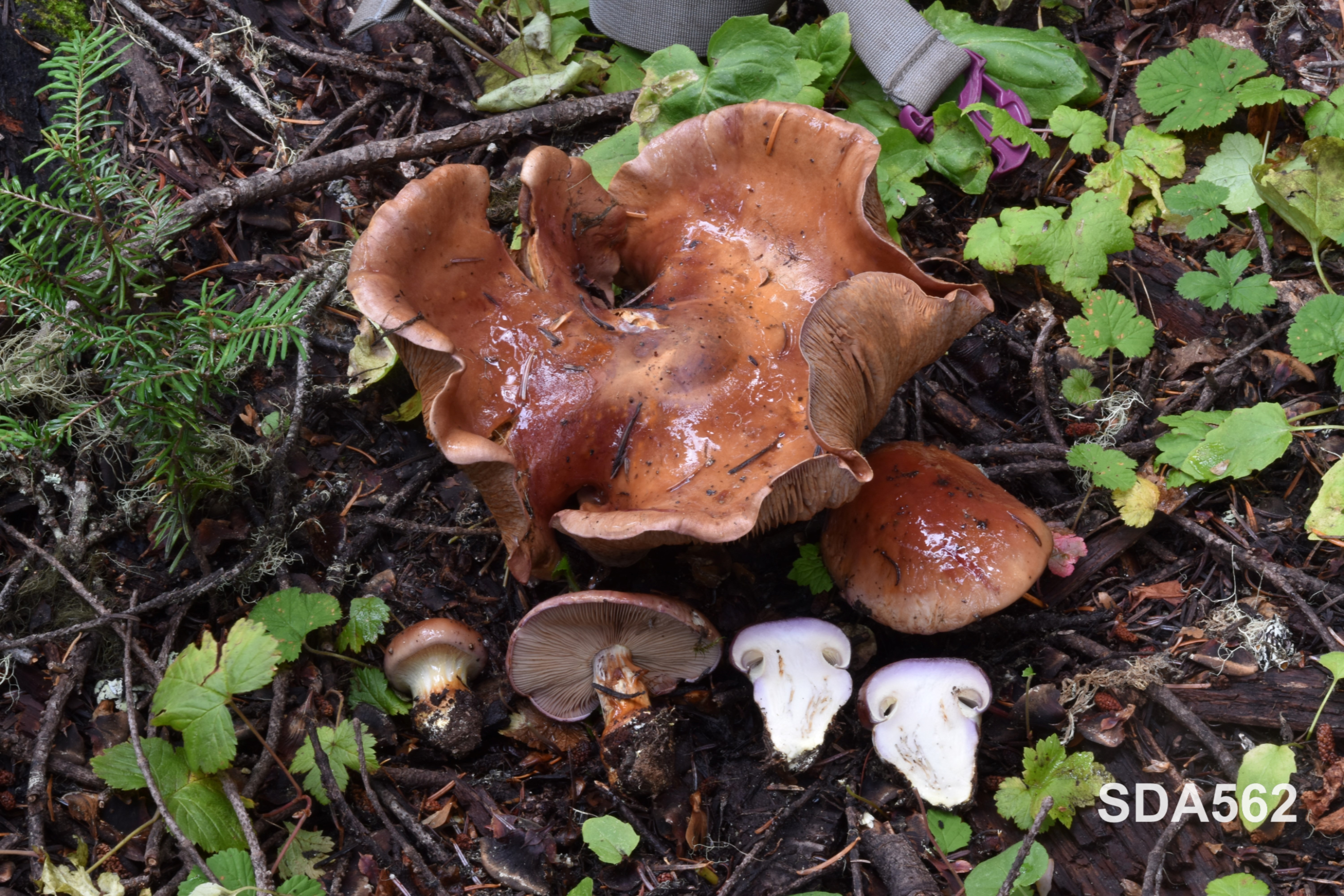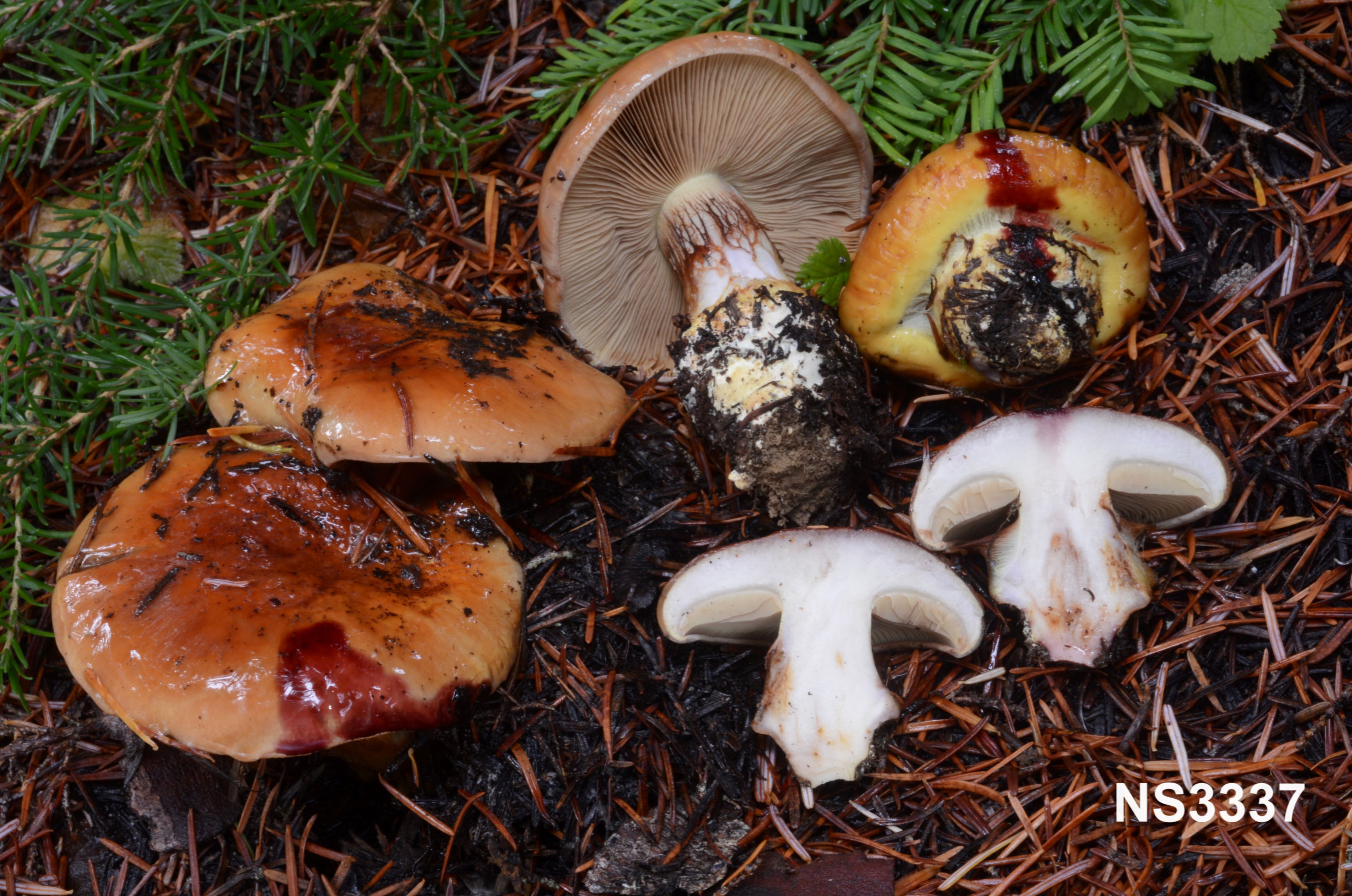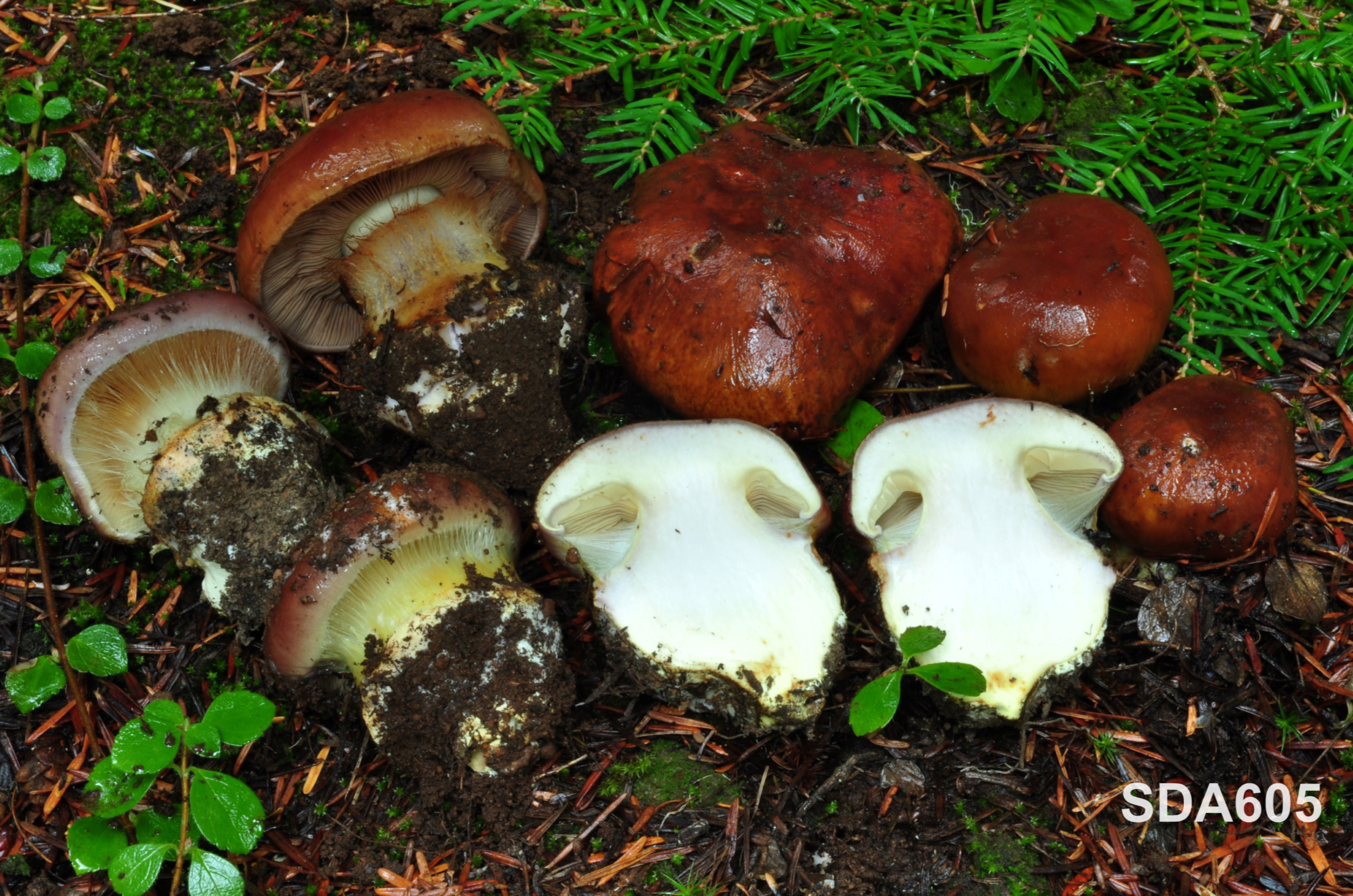Ecology and distribution: Solitary, scattered to gregarious on soil in conifer forests with Pseudotsuga menziesii, Tsuga spp., Abies spp., and Picea spp. in western North America. Producing basidiomata in autumn.