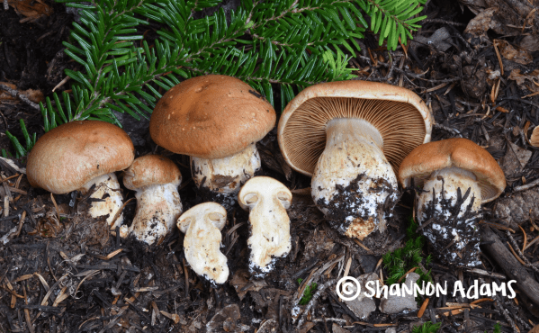 Cortinarius vespertinus (Fr.) Fr., Epicrisis Systematis Mycologici: 272 (1838)Collection(s) observed: SDA 514 - Watson Lakes, WA. September 2019 - Shannon Adams Description: Pileus: 20-80 mm across, margin persistently incurved, dry to moist, ochre to ochraceus brown, young specimens covered with fine, almost felty, coating of whitish to cream veil remnants over orange-brown base, notable as... Continue Reading →