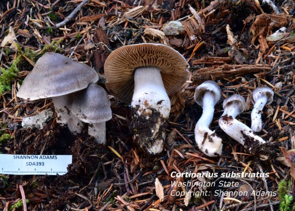 Cortinarius camphoratus (Fr.) Fr., Epicrisis Systematis Mycologici: 280 (1838) Discussion:Cortinarius camphoratus is a relatively common species in the Pacific-Northwest, recognized by it's larger size, lilac to almost-white color, non-viscid cuticle and heavy lilac to white veil. The species has a distinctive and unpleasant odor described as rotten potatoes. If you are able to detect it,... Continue Reading →