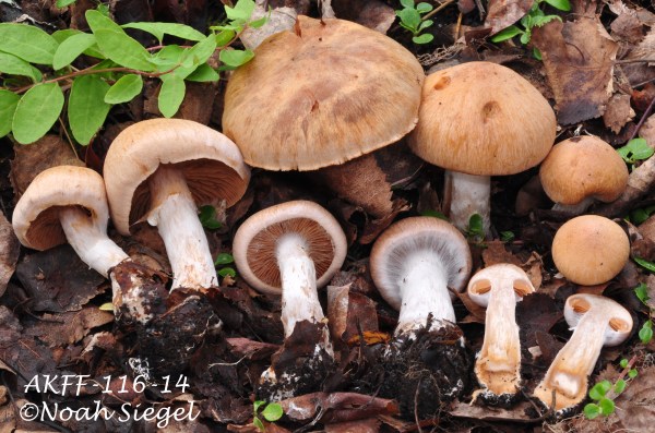 Cortinarius bivelus (Fr.) Fr., Epicrisis Systematis Mycologici: 292 (1838) Location: Crescent Lake Trail, Kenai Peninsula, Alaska Habitat: Growing under birch with aspen and spruce nearby. Collection Date: 27th August, 2014Collector: Noah SiegelCollection Reference: AKFF-116-14 Description:Pileus: Beige to light brown streaked. Gills: clay to warm-tan colored. Cortina: thick white partial veil. Taste/Odor: no odor, sweet taste. ITS:This... Continue Reading →